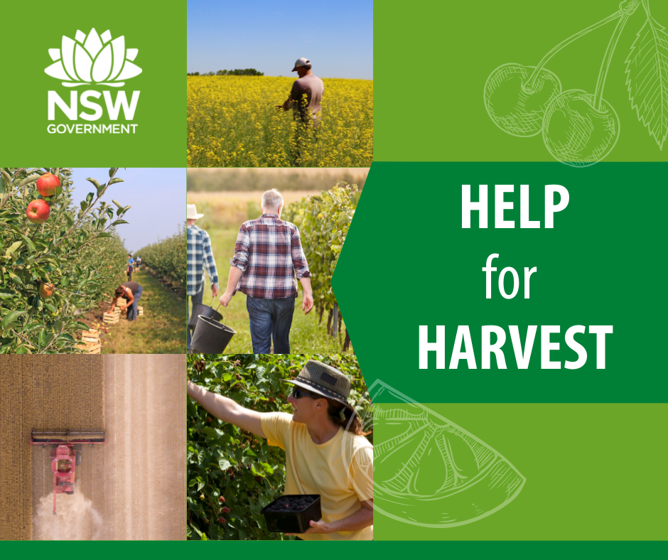Staff can use local contacts or the Help Harvest NSW website to help find suitable opportunities to assist in this year’s harvest. There is no cost to farmers getting help from departmental volunteers, as staff will be paid at their standard leave rate by the Department. Leave will be managed to ensure there will be no impact on services provided by the Department.