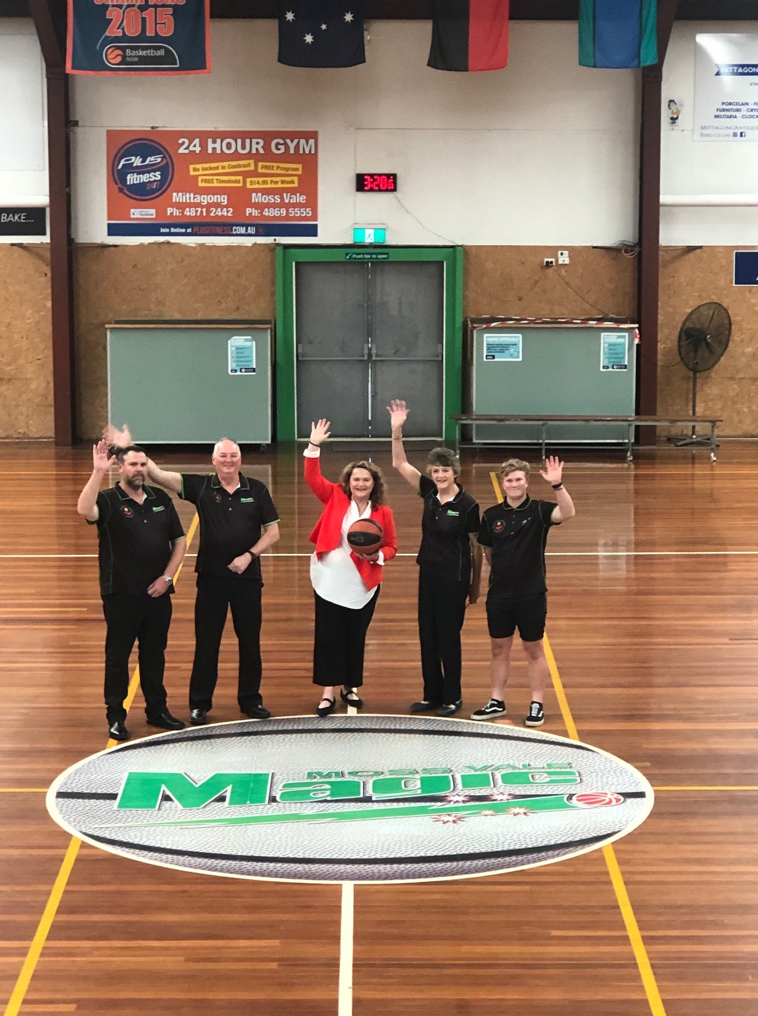 Member for Goulburn Wendy Tuckerman joined the Moss Vale District Basketball Association Chairman, Nigel Browne, Secretary Margaret Beaumont, and Directors Paul Barcicki, Eric Hackett and Joanne Marr to announce the funding.